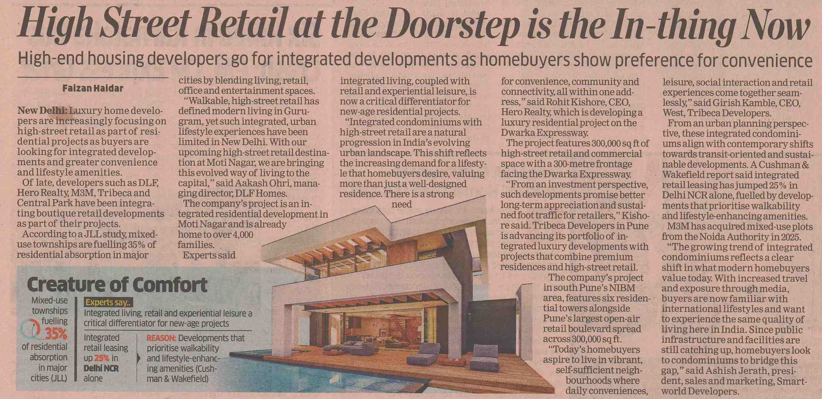 New Delhi: Luxury home developers are increasingly focusing on high-street retail as part of resi-dential projects as buyers are looking for integrated develop-ments and greater convenience and lifestyle amenities.
